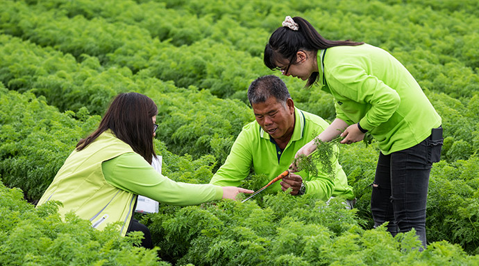 • 以「保證收購價格」跟農民契作胡蘿蔔,保障農民生計